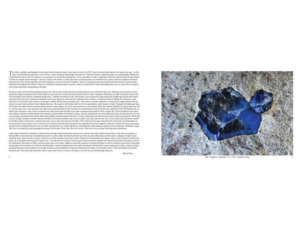 Kniha poskytuje náhľad do krás neživej prírody Slovenska a umožňuje širokej verejnosti získať podrobný prehľad o mineralogickej rozmanitosti našej krajiny. Kniha je rozdelená do kapitol podľa významných okruhov, resp. oblastí.